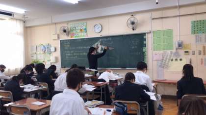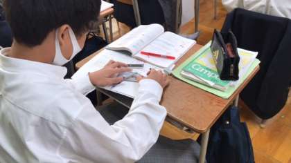 今日は平行移動の学習で、三角定規を組み合わせて平行移動の作図に取り組んでいました。