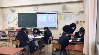 教科書の内容をグループごとに役割分担して音読します。来週の発表に向けて必死で練習していました。