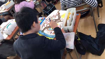 3年生が国語の授業で学習した『モチモチの木』の絵を描いています。