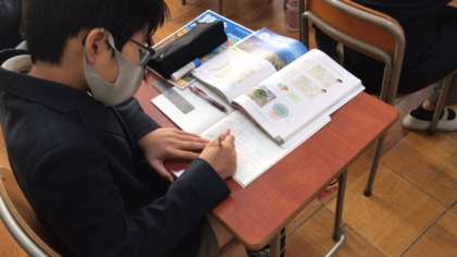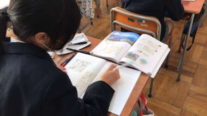 縮尺に気を付け、地図上のいろいろな土地を三角形や台形などに見立てておよその面積を求めていきます。非常に難しい内容ですが集中して取り組むことができていました。