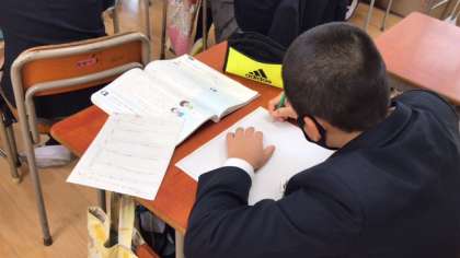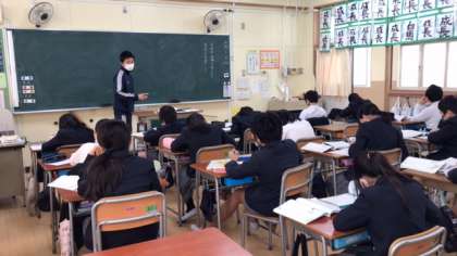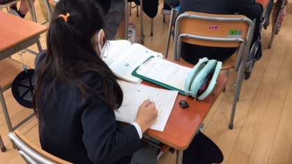 「クラスをよりよくしていくには」というテーマで、反対の立場の人の意見を想定してそれに対する反論や代替案などを考えていました。説得力のある文章を書くための下書きをしてから作文用紙に書き進めていきます。