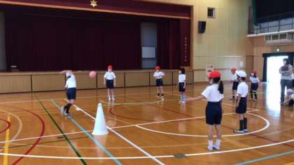 プレルボール(※)という競技で、みんなでボール運動を楽しんでいました。