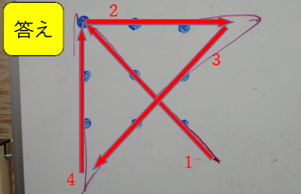 このすべて点を、“4本の直線”だけを使って“一筆書き”で書くにはどうしたら良いでしょう。