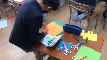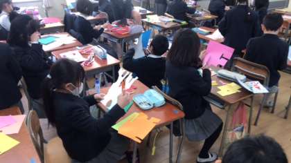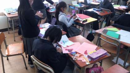 立体的になるように工夫しながら、いろいろな飾りを組み合わせていきます。お互いの作品を見比べながら、良い雰囲気で作業ができていましたね。