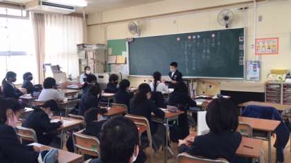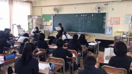 がんばりたいと思っていることや心に残っている言葉などを相手に伝わりやすくするにはどのような文章構成にすればよいのかを考えるのがテーマの授業です。教科書の文例を参考にしながら、エピソードなど具体例をうまくいれて、自分の言葉でしっかりと発表することができていました。