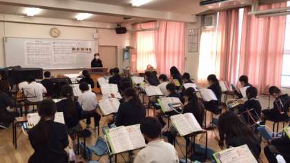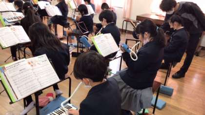 4年生の音楽で、鍵盤ハーモニカで「茶色の小びん」の合奏に取り組んでいます。