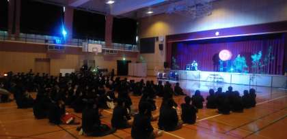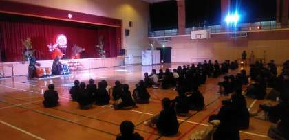 和楽器、タップ、日本舞踊、ミュージカルを交え、現代アレンジをした竹取物語に、児童の皆さんは食い入るように鑑賞していました。