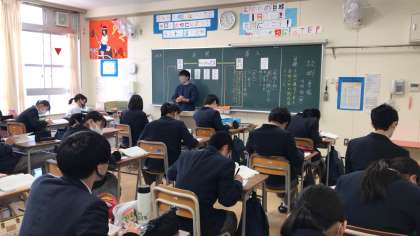 9年生の国語で小説の学習を進めています。今日は、魯迅の『故郷』を読み全体の構成を考えるのがテーマです。比喩がたくさん使われていたり、普段は使うことのない難しい表現が出てきたりします。