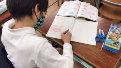 ノートに自分の考え方をまとめて問題演習に取り組みました。