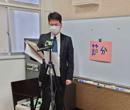 今日は副校長から節分についての話をしました。