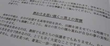 ※2月2日(火) 中学校オンライン全校集会 校長講話より