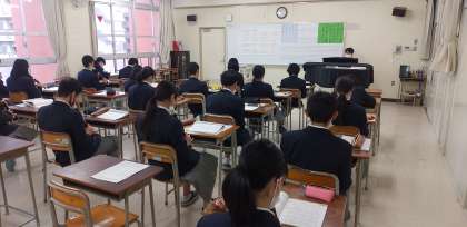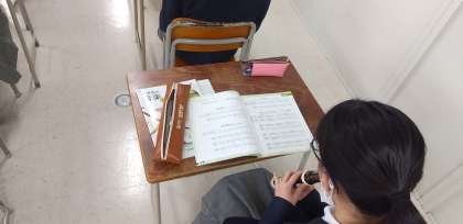 音楽の授業では感染拡大防止の観点を十分考慮しながら、リコーダーを課題に授業を進めています。