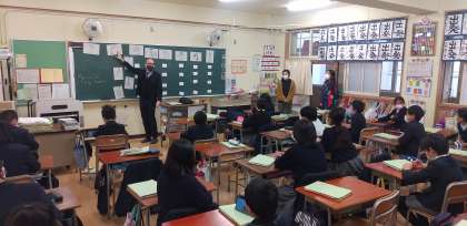 C−NETの先生からの言葉を繰り返します。みんな絵を見て大きな声で発音しています。