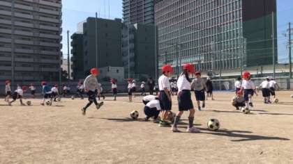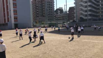 今日はボールを蹴るときにインサイドキックに挑戦していました。とても難しい動きですがみんなで楽しんで取り組むことができていました。
