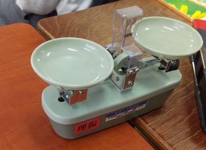 今日は左右の上さらに消しゴムなどを乗せて「釣り合う」事を学びました。