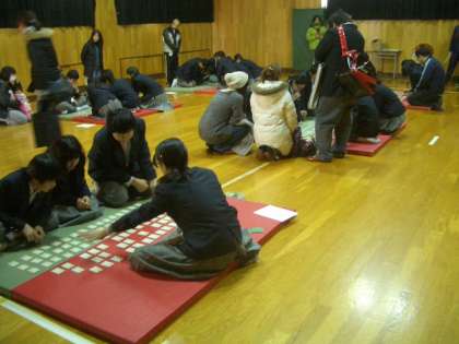 たいへん早くかるたを取る生徒もいて、びっくりしました。