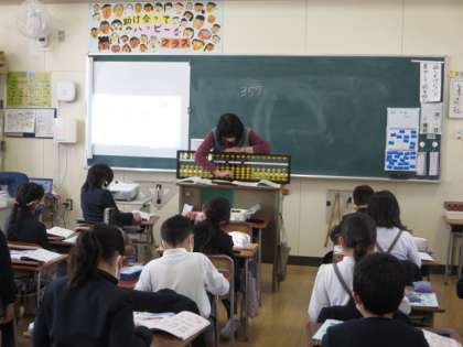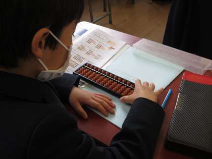そろばんは、数や位の大きさを目で見て理解し、指で動かして確認できる道具です。
