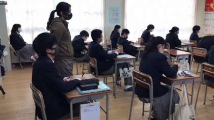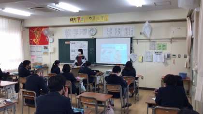 9年生の家庭科で、栄養教諭による食育の授業を実施しています。