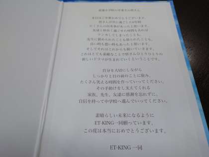 ET-KING のみなさまから卒業生に、あたたかいメッセージが届きました。