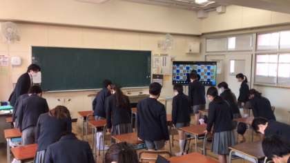 1年生から8年生まで共通で、オンラインで修了式を実施しました。