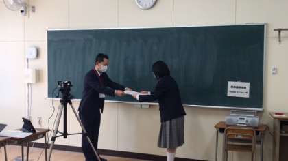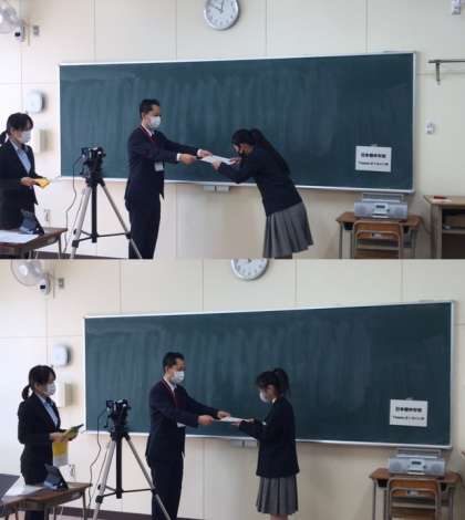 次に、この期間に部活動や美術の作品で優秀な成績を収めた生徒の皆さんに賞状を手渡しました。