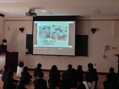 今日は、中学校の先生から6年生に対して、部活動紹介がありました。
