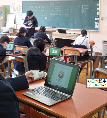 オンライン学習に備え、端末の起動やTeamsへのログインテストなどを行っています。