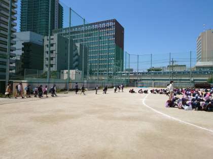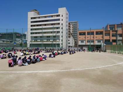 様々な安全面についての確認をするため、いったん運動場に集合しました。