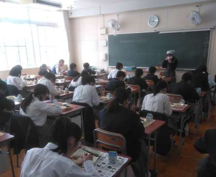 中学生も元気に登校し、給食はみんな静かに食べています。