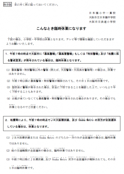 学校の臨時休業になるときのガイドラインを再掲します。