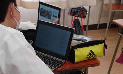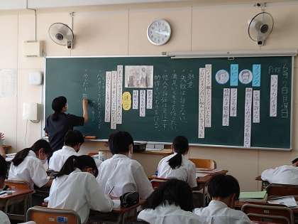 見やすい板書、ジグソー法を使った協同学習、端末を活用した調べ学習。