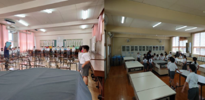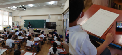 2年生が作ってくれた紹介動画やポスターを見ながら、学校にある教室をたんけんします。