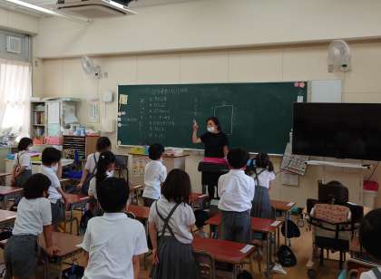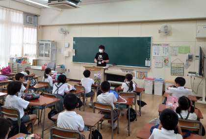 来週から始まるプール学習に向け、プールの入り方について学んでいます。