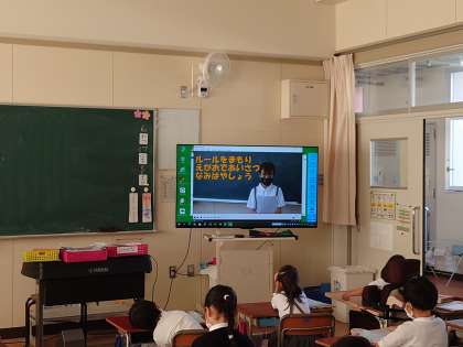 代表児童で話し合って決めた“学校のめあて”が、ビデオ集会で発表されました。子どもたちが真剣に考え、自分たちで主体的に決めた“めあて”。