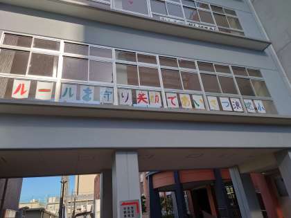 “学校のめあて”は、学校正門から見える場所にも掲示しています。