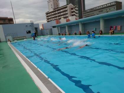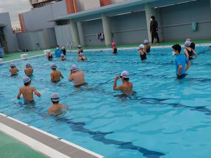 中学校の先生も水泳指導に来てくれており、これは開校以来初めての取組みです。