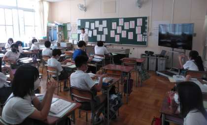 6年生の英語の授業では、季節とイベントのつながりを知るため、ゲーム形式で班で協力しながら、裏返しになったカードを合わせるという取り組みを行っていました。協調性と英語力が同時に身につく授業になっていました。