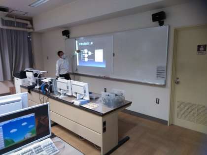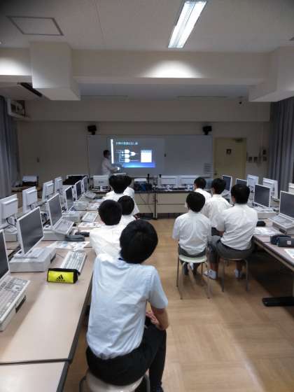 写真は 大阪市立都島工業高等学校でプログラミングについてです。