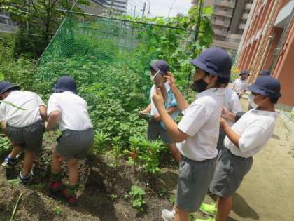 友だちと協力して、タブレットを使って写真や動画で記録を行っていました。夏の虫たちの様子を熱心に動画で撮影している子もいました。
