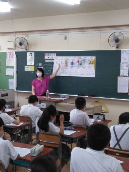 5年生で食育の授業があり、飲み物ついて学習しました。身近な飲料水を例にあげて、砂糖がどれだけ入っているかなど、成分の知識もつきました。