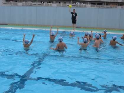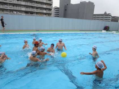 最後のお楽しみとして、「水球」に挑戦しました!女の子も男の子も、白熱した試合になりました。そして最後のあいさつまで、きちんと並んで整列しています。さすが、高学年!
