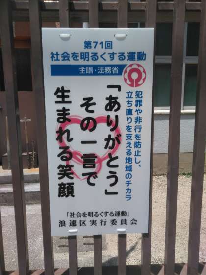 社会を明るくする運動の看板を設置しました。地域にも支えられています。