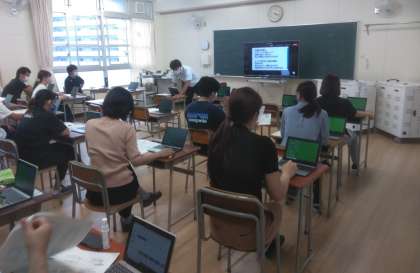 放課後、教職員によるデジタル教材使用に向けての研修会がありました。今後に向けて、準備をすすめているところです。使用方法だけでなく、注意点なども情報共有しました。