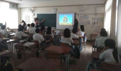 8年生でC-NETの先生から母国のクイズをとりいれた英語の授業がありました。3つのグループに分けチーム戦でクイズに答えるのですが、どのグループも楽しそうに参加していました。