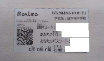 本日お家で学習している皆さまへ。デジタルドリル教材の使用方法を案内します。先日IDとパスワードが書かれたカードをお渡ししていると思いますので、必要に応じてご活用ください。