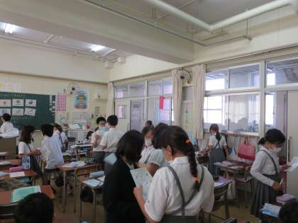 今日の外国語では“Do you have 〜?”の表現を使って、どんな文房具を持っているかどうかインタビューする活動を行いました。