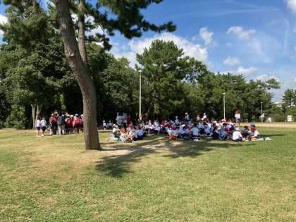 自然の中で今からお昼ご飯です。 「いただきます!!」と元気な声がたくさん聞こえます!