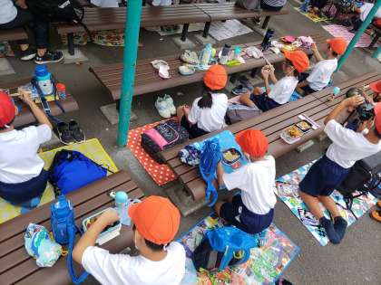 遠足の楽しみの一つ、お弁当タイムです。
