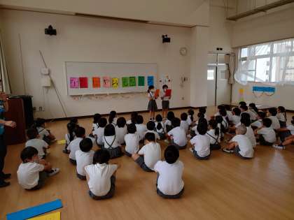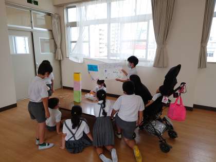 司会の合図でおもちゃフェスが始まると、緊張しながらもお兄さんお姉さんの顔になり自分たちが一生懸命作ったおもちゃで1年生を笑顔にすることができました。その姿を見て、2年生も笑顔で活動していました。