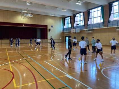 数学、社会ではクイズやしりとり形式など、家庭科はポケットティッシュやスマホのカバー作り、体育ではバスケットボールを楽しみました。